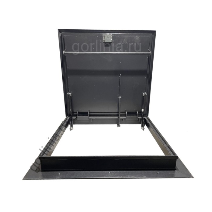 Откидная крышка заполнена сверху гладким кровельным листом 2 мм с загнутыми книзу краями, вылетающими на 25 мм за периметр коробки. Внутри каркаса створки между ребрами обвязки проложен рулонный минеральный утеплитель 50 мм, подшитый снизу листом 1 мм.