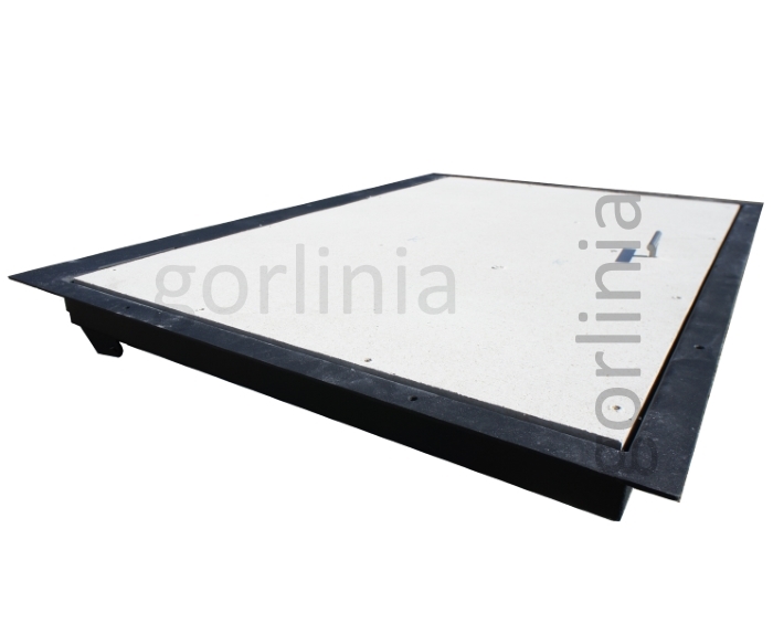 Облегченная рама из листового проката 3 мм с наличником, жесткий каркас полотна в обвязке трубой 30х20 заполнен гипсоволокнистым влагостойким листом над утеплителем под чистовую отделку плиткой.